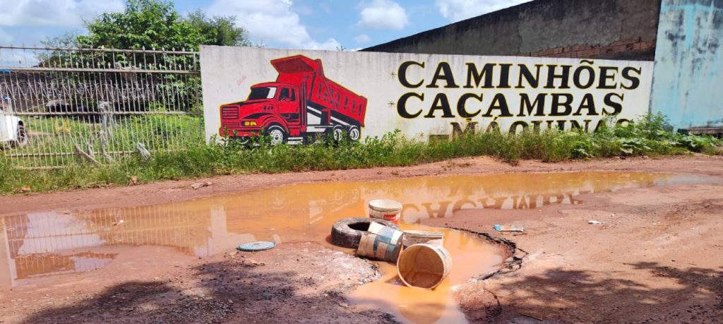 ‘Fiscaliza’ ajuda a consertar rua esburacada no Cinturão Verde já ‘sinalizada’ por moradores com baldes e pneus